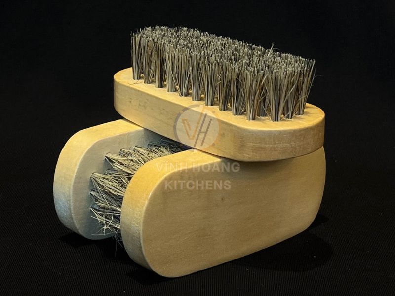 - Dùng bàn chải lông mềm kết hợp với dung dịch tẩy nhẹ như nước pha chút xà phòng rửa bát.