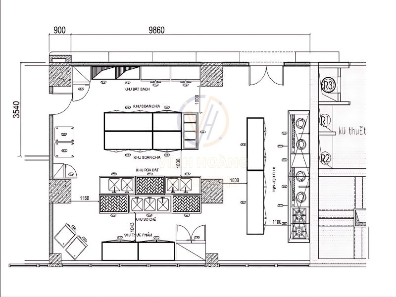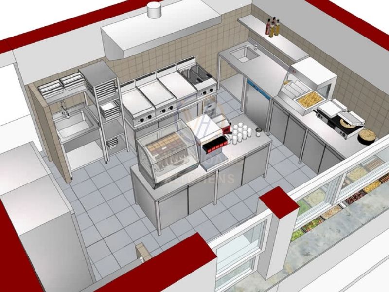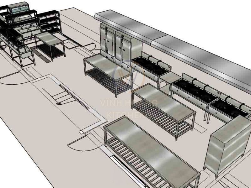 Để khách hàng có thêm niềm tin vào cách làm việc của chúng tôi, sau đây là các bản vẽ mô hình bếp ăn công nghiệp do kỹ sư Vĩnh Hoàng Kitchens thiết kế: