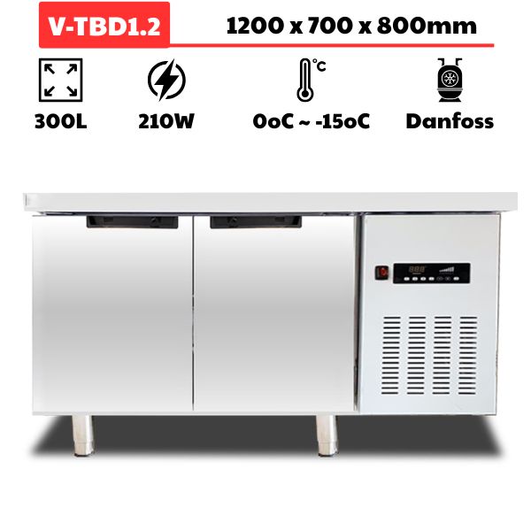 - Kích thước và dung tích: Xác định không gian lắp đặt và nhu cầu lưu trữ thực phẩm của bạn. Với model này dung tích sử dụng tối đa 300 lít và kích thước bàn là 1200 x 700 x 800 mm. Với kích thước này thì phù hợp cho nhiều mô hình kinh doanh vừa và nhỏ.
