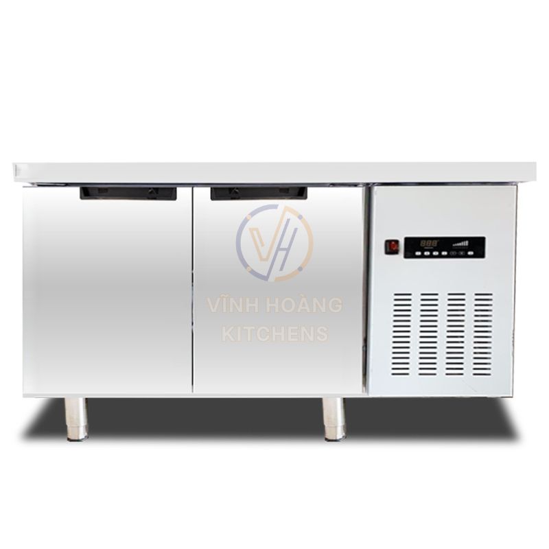 Bàn đông 2 cánh inox 1500mm trực tiếp được trang bị dàn lạnh ống đồng cao cấp, giúp tăng hiệu suất làm lạnh và đảm bảo độ bền vượt trội. Thiết bị có khả năng làm đông sâu trong dải nhiệt độ từ 0 đến -15℃, phù hợp bảo quản thực phẩm tươi sống lâu dài. Đặc biệt, công nghệ tiết kiệm điện hiện đại giúp giảm đến 50% chi phí vận hành. Cùng Vĩnh Hoàng Kitchens tìm hiểu chi tiết hơn về mẫu bàn đông công nghiệp ngay dưới đây!