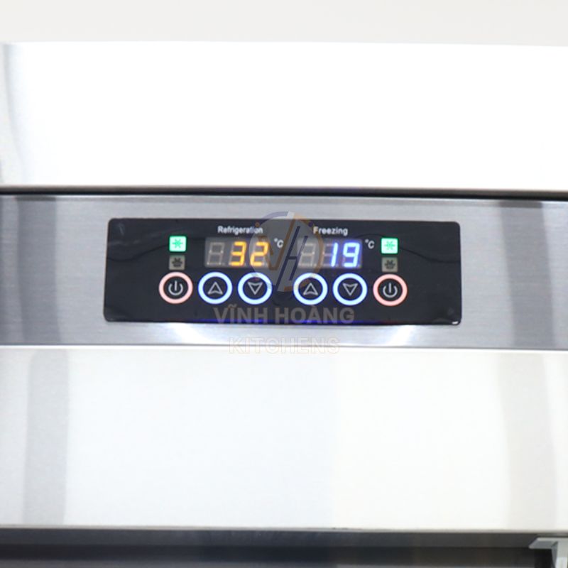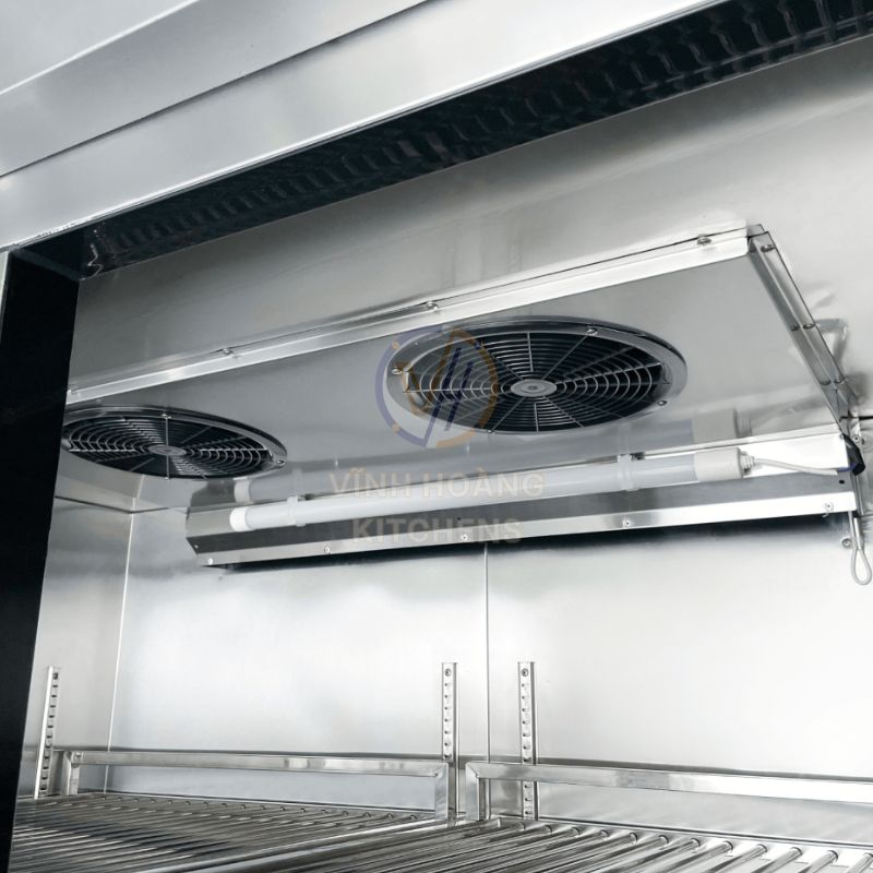 Toàn bộ các dòng bàn mát, bàn đông mát của Vĩnh Hoàng Kitchens đều được trang bị hệ thống làm lạnh gián tiếp bằng quạt gió tuần hoàn, giúp luồng khí lạnh lan tỏa đều khắp các khoang chứa. Nhờ đó, nhiệt độ bên trong luôn ổn định, không xảy ra tình trạng chênh lệch giữa các vị trí. Đặc biệt, thiết bị chỉ mất 30–40 phút để đạt đến mức nhiệt độ cấp đông sâu -18ºC, đảm bảo thực phẩm được làm lạnh nhanh chóng và giữ trọn độ tươi ngon.