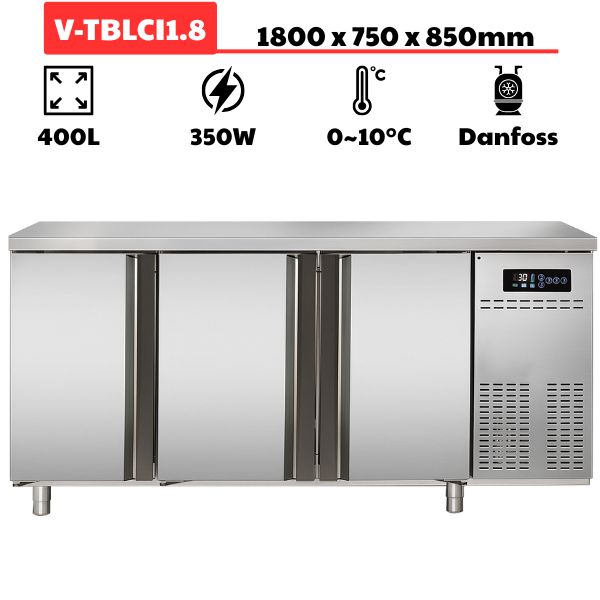 Bàn mát 3 cánh inox với dung tích 400 lít với kích thước 1800x750x850 mm. Thì chắc chắn sẽ đáp ứng được tối ưu nhu cầu bảo quản thực phẩm cho nhà hàng, quán ăn hoặc các khu bếp công nghiệp.