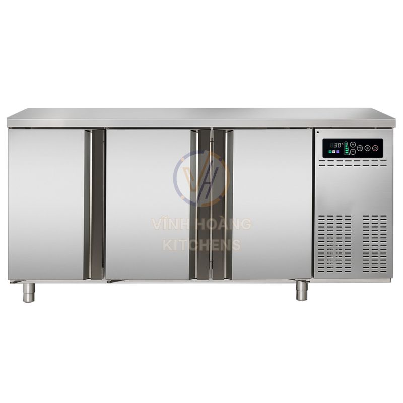 Bàn mát 3 cánh inox 1800 quạt gió có dung tích rộng tới 400 lít cùng với hệ thống làm lạnh quạt gió. Bàn mát không chỉ giúp bảo quản thực phẩm được tươi lâu hơn mà còn đóng vai trò như là một bàn sơ chế trong gian bếp. Điều gì đã khiến cho bàn mát inox quạt gió mà Vĩnh Hoàng Kitchens cung cấp lại được nhiều khách hàng ưa chuộng hiện nay. Hãy cùng khám phá bí mật đó trong bài viết sau đây nhé.