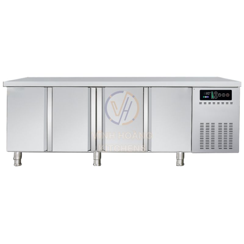 Bàn mát 4 cánh inox 2300 quạt gió có dung tích rộng tới 610 lít cùng với hệ thống làm lạnh quạt gió. Bàn mát không chỉ giúp bảo quản thực phẩm được tươi lâu hơn mà còn đóng vai trò như là một bàn sơ chế trong gian bếp. Điều gì đã khiến cho bàn mát inox quạt gió mà Vĩnh Hoàng Kitchens cung cấp lại được nhiều khách hàng ưa chuộng hiện nay. Hãy cùng khám phá bí mật đó trong bài viết sau đây nhé.