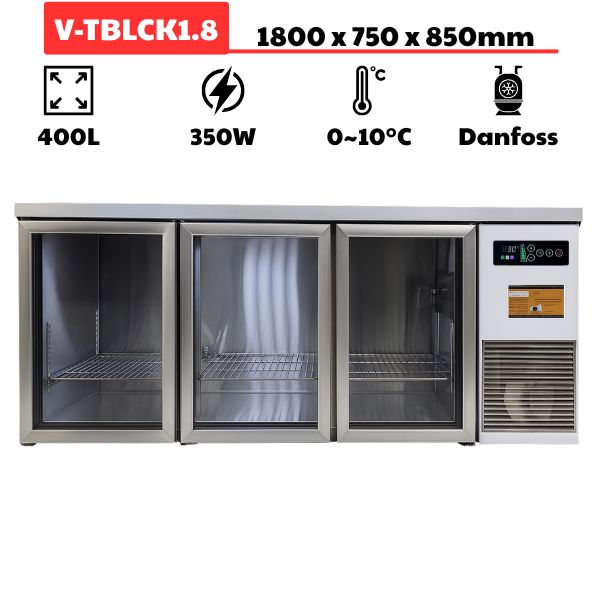 Bàn mát cánh kính 1800mm là thiết bị bếp công nghiệp hiện đại, kết hợp dung tích lớn – trưng bày sang trọng – sơ chế tiện lợi. Với 3 cánh kính trong suốt, người dùng dễ dàng quan sát nguyên liệu bên trong mà không cần mở cửa, giúp tiết kiệm điện năng và giữ nhiệt ổn định. Trang bị hệ thống làm lạnh quạt gió nhanh và đồng đều cùng máy nén Danfoss bền bỉ, sản phẩm đảm bảo hiệu suất vượt trội, phù hợp cho nhà hàng, khách sạn, tiệm bánh và bếp ăn tập thể.