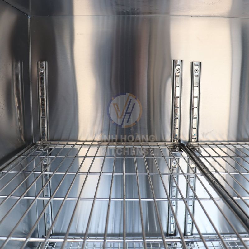 - Dung tích 400L – thiết kế 1800mm rộng rãi: Cho phép bảo quản số lượng lớn thực phẩm, phù hợp với nhu cầu lưu trữ tại các bếp ăn phục vụ đông khách.