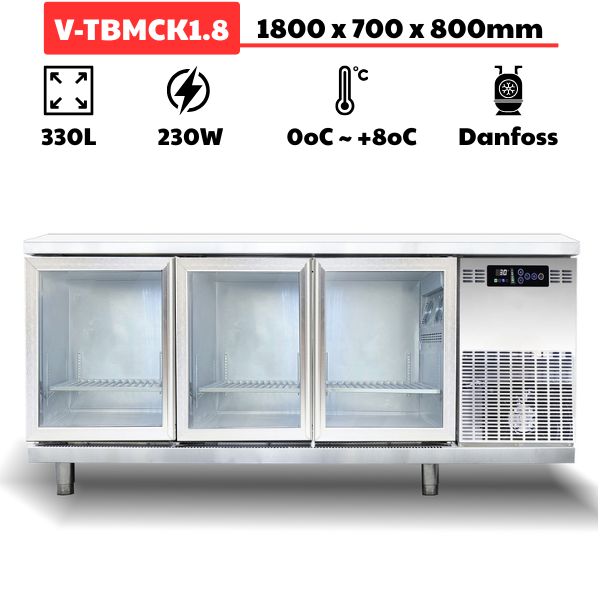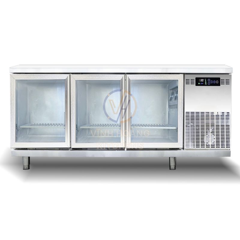 Bàn mát cánh kính 1.8m trực tiếp là thiết bị công nghiệp được dùng để bảo quản các loại thực phẩm tươi sống, đồ uống,…ở nhiệt độ thấp. Thông thường sẽ là từ 0°C ~ +8°C. Thiết bị này được thiết kế với 3 cánh kính sang trọng, có thể nhìn được thực phẩm bên trong tủ. Đồng thời với chất liệu Inox bao quanh giúp người dùng có thể tiến hàng sơ chế, pha chế ngay trên bề mặt bàn. Vậy bàn mát cánh kính trực tiếp của Vĩnh Hoàng Kitchens có đặc điểm gì khác biệt? Hãy cùng theo dõi chi tiết nội dung ở bài viết dưới đây nhé.