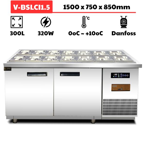 Ngoài bàn salad 1500mm, Vĩnh Hoàng Kitchens còn cung cấp các model bàn salad 1200mm, 1800mm phù hợp với các mô hình kinh doanh vừa và lớn. Bạn nên xác định nhu cầu sử dụng và khả năng tài chính để cân nhắc sản phẩm phù hợp nhất.
