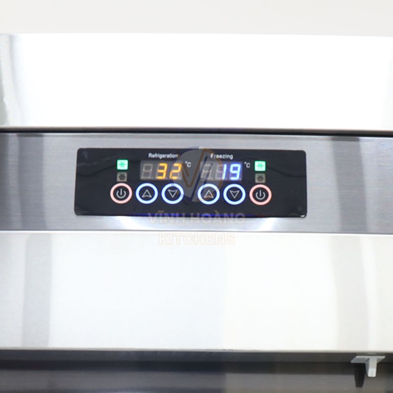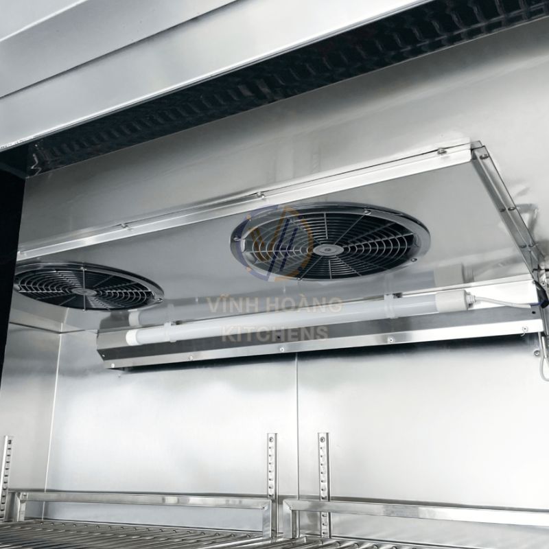 Toàn bộ các dòng bàn salad của Vĩnh Hoàng Kitchens đều được trang bị hệ thống làm lạnh gián tiếp bằng quạt gió tuần hoàn, giúp luồng khí lạnh lan tỏa đều khắp các khoang chứa. Nhờ đó, nhiệt độ bên trong luôn ổn định, không xảy ra tình trạng chênh lệch giữa các vị trí. Đặc biệt, thiết bị chỉ mất 30–40 phút để đạt đến mức nhiệt độ làm lạnh 0oC ~ +10oC, đảm bảo thực phẩm được luôn giữ được độ tươi ngon.
