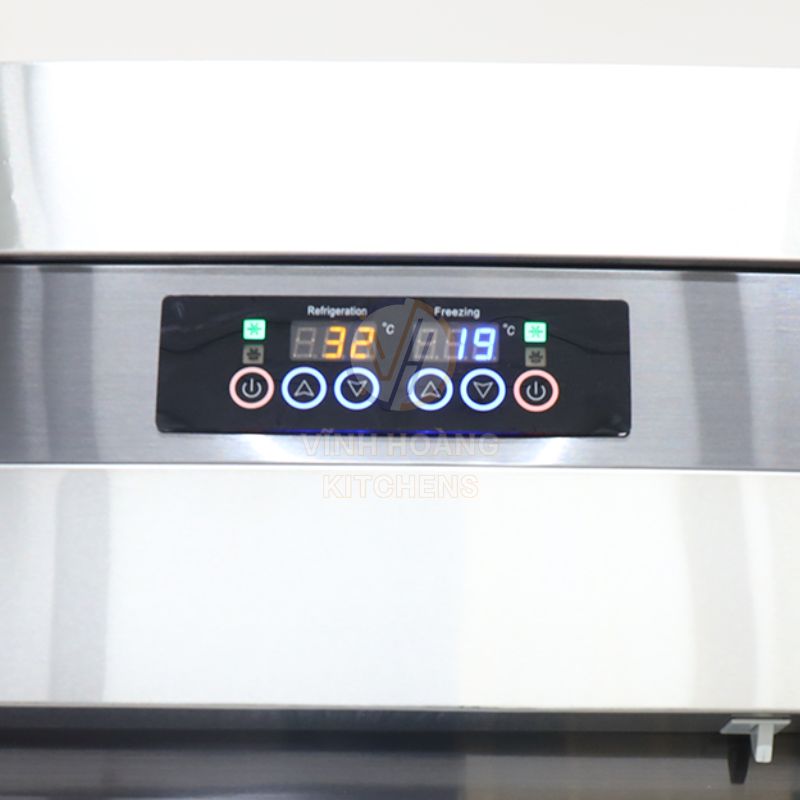 Toàn bộ các dòng bàn salad của Vĩnh Hoàng Kitchens đều được trang bị hệ thống làm lạnh gián tiếp bằng quạt gió tuần hoàn, giúp luồng khí lạnh lan tỏa đều khắp các khoang chứa. Nhờ đó, nhiệt độ bên trong luôn ổn định, không xảy ra tình trạng chênh lệch giữa các vị trí. Đặc biệt, thiết bị chỉ mất 30–40 phút để đạt đến mức nhiệt độ làm lạnh 0oC ~ +10oC, đảm bảo thực phẩm được luôn giữ được độ tươi ngon.