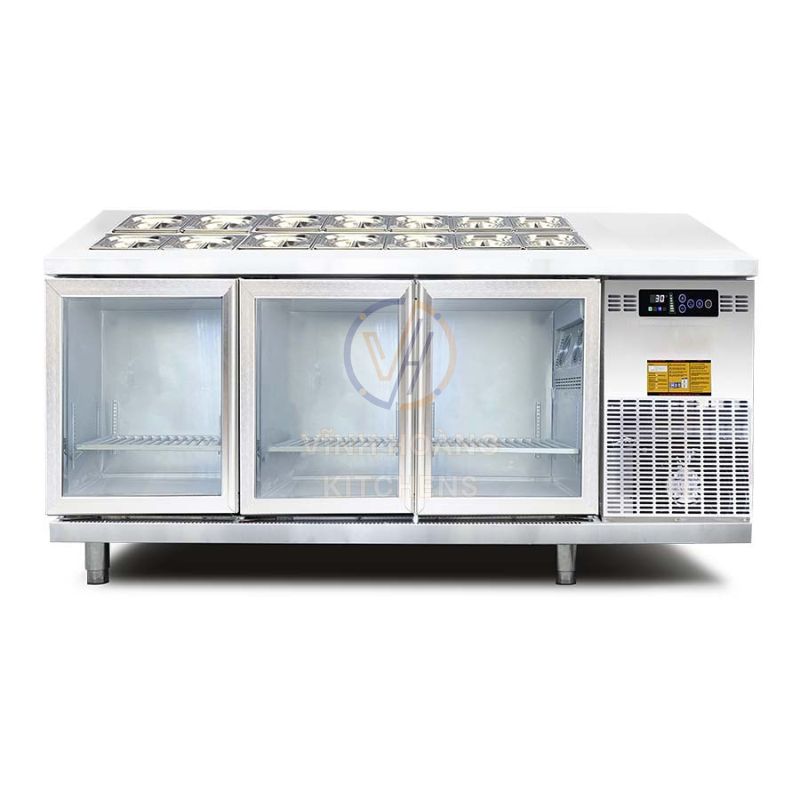 Bàn salad 3 cánh kính 1800mm (400L) quạt gió