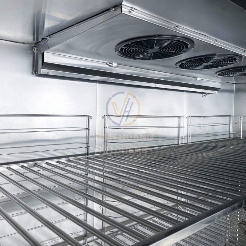 Toàn bộ các dòng bàn salad của Vĩnh Hoàng Kitchens đều được trang bị hệ thống làm lạnh gián tiếp bằng quạt gió tuần hoàn, giúp luồng khí lạnh lan tỏa đều khắp các khoang chứa. Nhờ đó, nhiệt độ bên trong luôn ổn định, không xảy ra tình trạng chênh lệch giữa các vị trí. Đặc biệt, thiết bị chỉ mất 30–40 phút để đạt đến mức nhiệt độ làm lạnh 0oC ~ +10oC, đảm bảo thực phẩm được luôn giữ được độ tươi ngon.