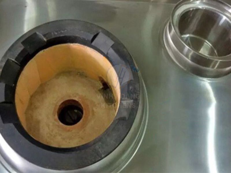 - Bạn cần lau rửa tất cả các vị trí bề mặt bếp, vòi nước, bầu nước, kiềng bếp.