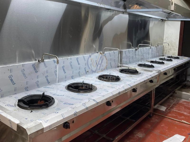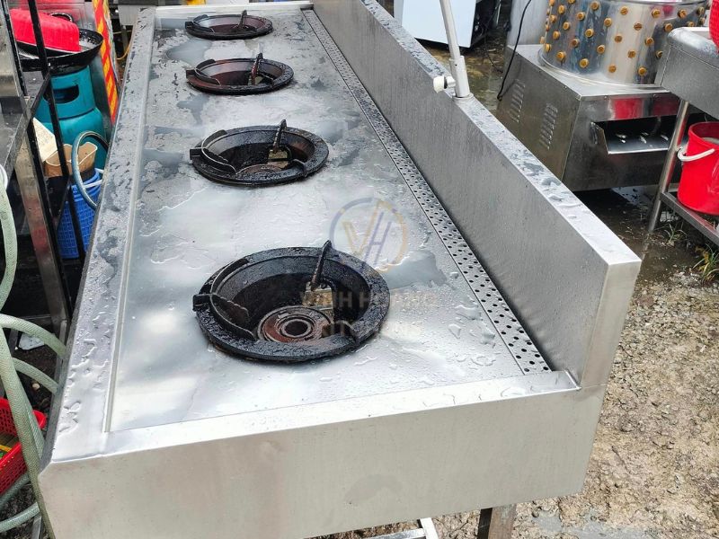 Bếp á 4 họng công nghiệp của Vĩnh Hoàng Kitchens được thiết kế với sự sáng tạo của các kỹ sư Việt Nam, đáp ứng tối đa nhu cầu của người dùng trong nước. Chất liệu là inox 304 hoặc inox 201, hay còn gọi là thép không gỉ, với độ bền cao và khả năng chịu nhiệt tốt, đảm bảo an toàn vệ sinh thực phẩm. Được ưa chuộng trong các nhà hàng và quán ăn lớn, bếp 4 họng của chúng tôi hoạt động liên tục với hiệu suất cao. Thiết kế chân bếp chịu tải lên đến 500kg, cho phép nấu nhiều món ăn với nhiều nồi khác nhau trong thời gian dài. Hệ thống vòi nước được tích hợp giúp giảm nhiệt độ bề mặt bếp và tránh tình trạng cong vênh sau mỗi 15 phút xả nước. Với những tính năng ưu việt này, bếp gas 4 họng từ Vĩnh Hoàng Kitchens là sự lựa chọn hoàn hảo cho các đầu bếp chuyên nghiệp mong muốn nâng cao hiệu quả và tiện nghi trong căn bếp của mình. Hãy liên hệ 0934.600.467 ngay hôm nay để biết thêm chi tiết!