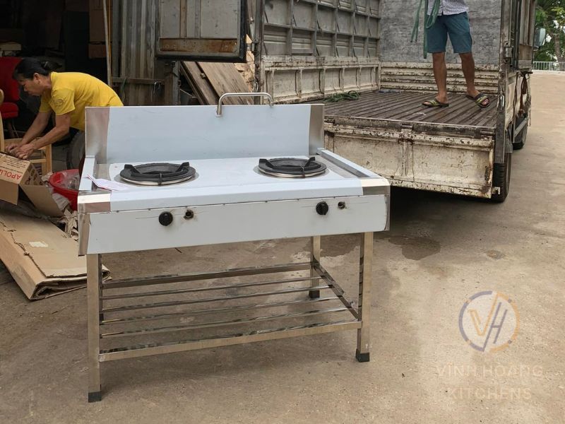 Bếp á đôi công nghiệp có thiết kế hiện đại với 2 họng đốt