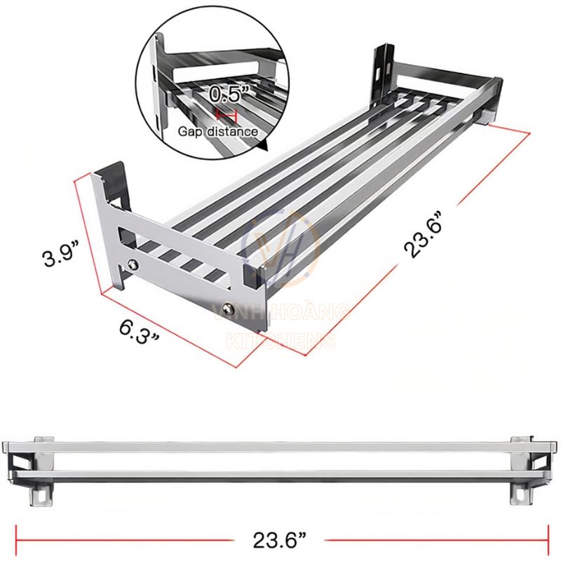 Bề mặt inox nhẵn mịn, dễ lau chùi dầu mỡ. Với thiết kế thanh lan, nước không đọng lại, giúp kệ luôn khô ráo, sạch sẽ.