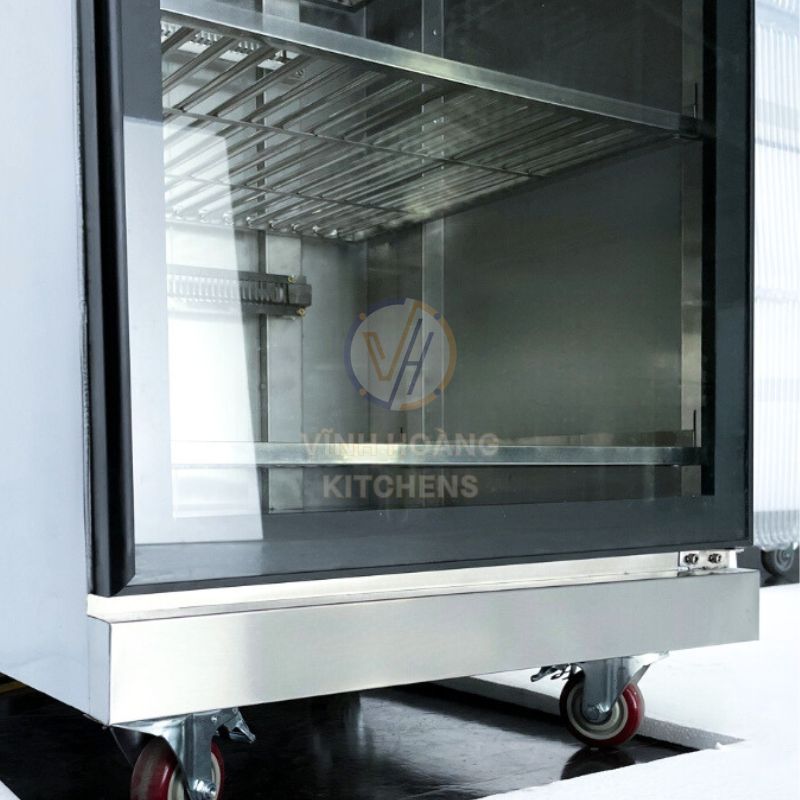 So với dòng tủ cánh inox truyền thống, thiết kế cửa kính mang đến diện mạo hiện đại và chuyên nghiệp hơn cho không gian bếp. Nhờ mặt kính trong suốt, người dùng có thể theo dõi trực tiếp tình trạng sấy bên trong, nhanh chóng phát hiện sự cố hoặc kiểm soát quá trình vận hành mà không cần mở tủ.