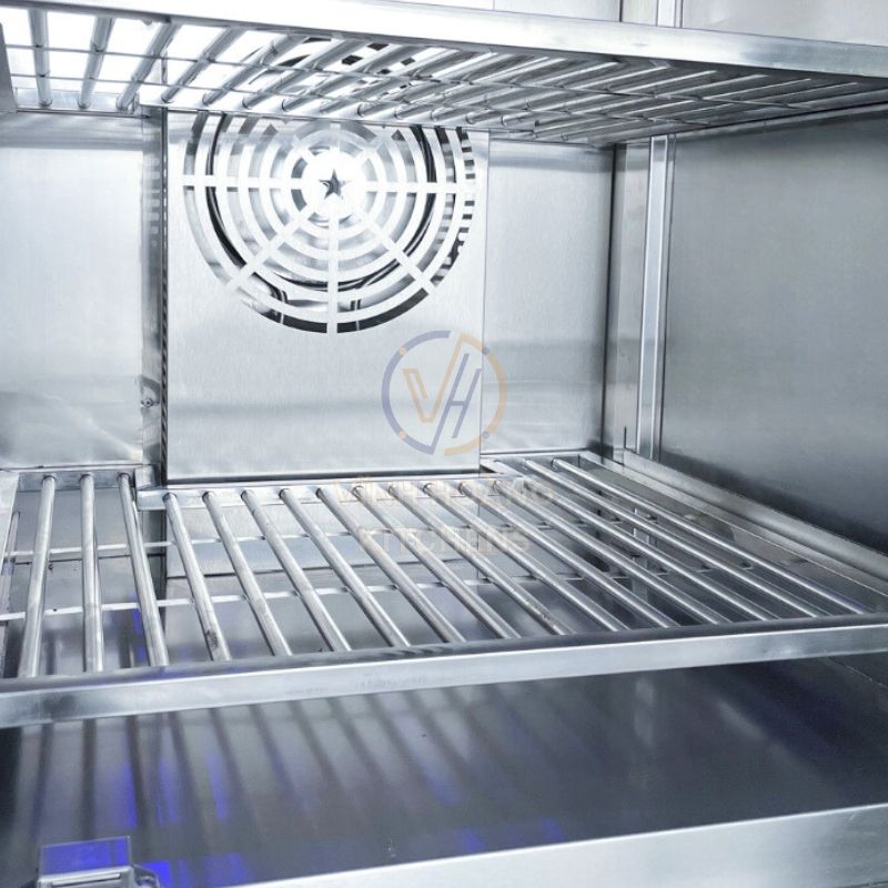 Nếu tình trạng bát đũa lâu khô, dễ ám mùi và phát sinh ẩm mốc khiến bạn mất nhiều thời gian xử lý sau mỗi ca rửa, thì giải pháp đã có sẵn. Tủ sấy bát công nghiệp 1800L 3 cánh của Vĩnh Hoàng Kitchens được thiết kế để sấy khô đồng thời số lượng lớn, lên đến khoảng 500 bát trong một lần vận hành, giúp tối ưu thời gian và công sức cho khu bếp. Không chỉ nâng cao hiệu suất làm việc, tủ sấy công nghiệp còn đảm bảo bát đũa luôn khô ráo, sạch sẽ và an toàn vệ sinh.